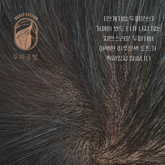 두피공방의 안개기법 (쉐딩기법)은 미세한 입자와 모발에 맞는 색상 표현으로 가까이에서 보아도 티가 전혀 나지 않고,