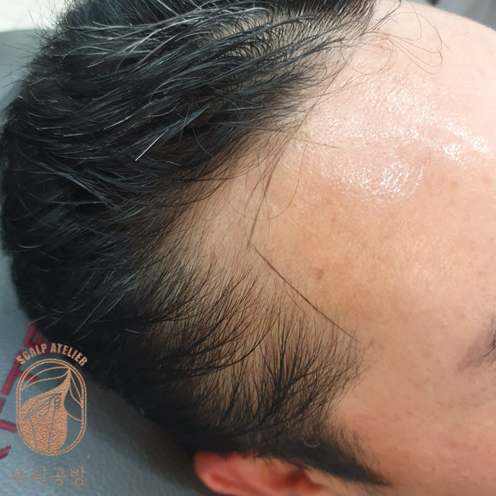 - [결과] 머리를 뒤로 넘기는 스타일 연출 가능, 자연스러운 헤어라인 확보, 머리숱이 더 풍성해 보