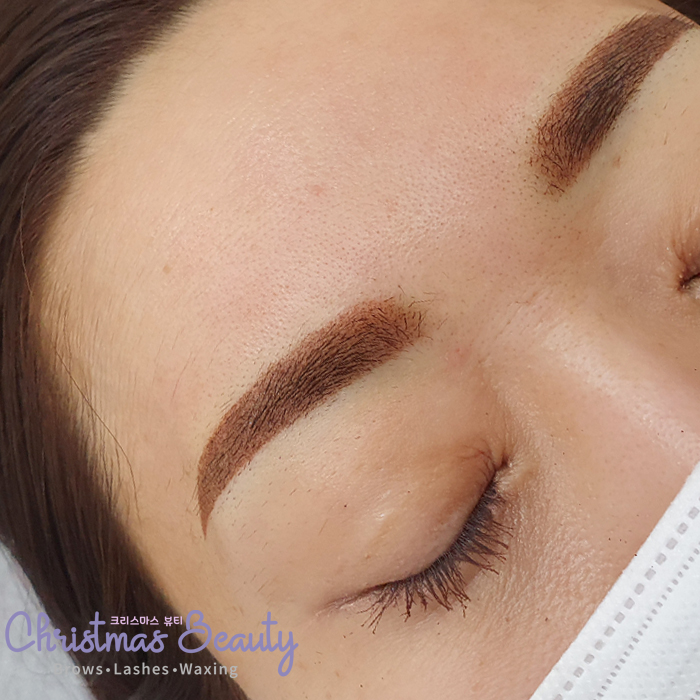- (리터치 불가상황) 보통 리터치를 받는 것을 감안해서 1차 시술은 매우 연하고 자연스럽게 피부 발색을 보기 위해서 연하게 시술을 해드리고 있으나, 고객님의 사정상 리터치를 받을 수 없기 때문에 1차 시술을 매우 꼼꼼하고 착색이 완벽하게 되도록 신경을 써서 작업해 드렸습니다.