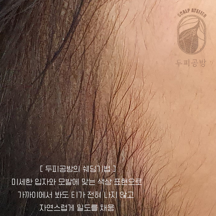 긴머리는 삭발한 모발처럼 점으로 보이는 것이 아니기 때문에 두피에 어색한 도트가 찍혀있으면 부자연스럽고 티가 나게 됩니다.